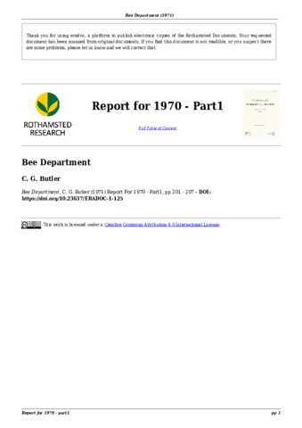 Report of the Bee Department 1970 pt 1.