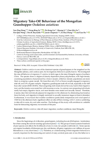 Migratory take-off behaviour of the Mongolian grasshopper Oedaleus asiaticus