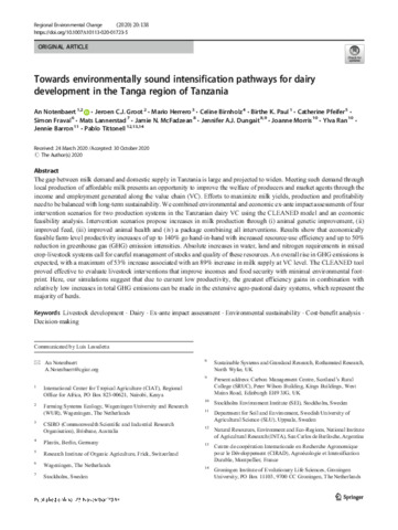 Towards environmentally sound intensification pathways for dairy development in the Tanga region of Tanzania