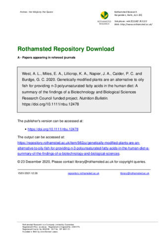 Genetically modified plants are an alternative to oily fish for providing n-3 polyunsaturated fatty acids in the human diet: A summary of the findings of a Biotechnology and Biological Sciences Research Council funded project