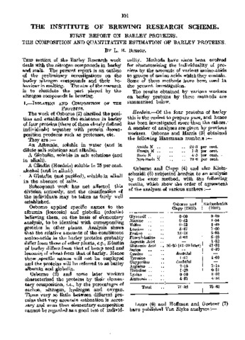 First report on barley proteins - the composition and quantitative estimation of barley proteins.