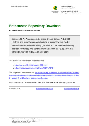 Hillslope and groundwater contributions to streamflow in a Rocky Mountain watershed underlain by glacial till and fractured sedimentary bedrock