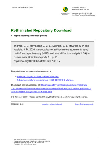 A comparison of soil texture measurements using mid-infrared spectroscopy (MIRS) and laser diffraction analysis (LDA) in diverse soils