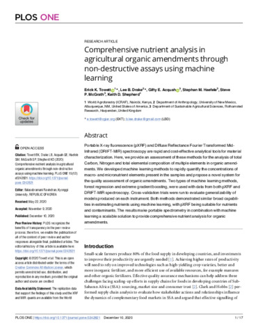 | Keywords | Agriculture, Organic Amendments, Nutrient Management, Non-Destructive Assays, Machine Learning, Portable X-ray fluorescence (pXRF), Diffuse Reflectance Fourier Transformed Mid-Infrared (DRIFT-MIR) |