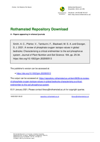 Understanding the phosphate oxygen isotope (δ18O‐PO4) composition of bedrock phosphate sources is becoming ever more important, especially in areas of soil research which use this isotope signature as a proxy for biological cycling of phosphorus (P). For many of these studies, obtaining a sample of the source bedrock or applied mineral fertiliser for isotope analysis is impossible; meaning there is now a demand for a comprehensive characterisation of global bedrock δ18O‐PO4 to support this work. Here we compile δ18O‐PO4 data from a wide range of global bedrocks, including 56 new values produced as part of this study and a comprehensive overview of those within the previously existing literature. We present δ18O‐PO4 data from the range of major phosphatic lithologies alongside as much metadata for the samples as could be gathered. Much of the data comes from bedrocks of marine sedimentary origin (< 1 Ma = > +22‰, > 540 Ma = ≈ +12‰), but we also present data from bedrocks associated with guano (range: +19.5 to +15‰) and igneous deposits (range: +12 to –0.8‰), both of which have distinct δ18O‐PO4 signatures due to their formation mechanisms. We show that where repeat measurements of the same formation have been undertaken, regardless of method or exact sample location, there is an average within formation error of ± 1.25‰. This is important, as is constitutes a reasonable level of uncertainty for phosphorus cycling studies which need to estimate bedrock δ18O‐PO4 composition based on the literature. In combination, this data set presents 284 δ18O‐PO4 values from 56 countries; a comprehensive starting point for researchers interested in understanding bedrock end member δ18O‐PO4.