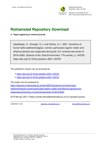 Dynamics of fluvial hydro-sedimentological, nutrient, particulate organic matter and effective particle size responses during the U.K. extreme wet winter of 2019–2020
