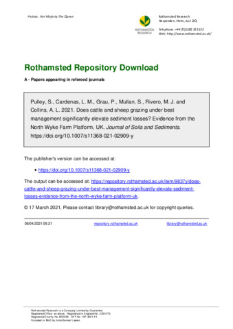 Does cattle and sheep grazing under best management significantly elevate sediment losses? Evidence from the North Wyke Farm Platform, UK