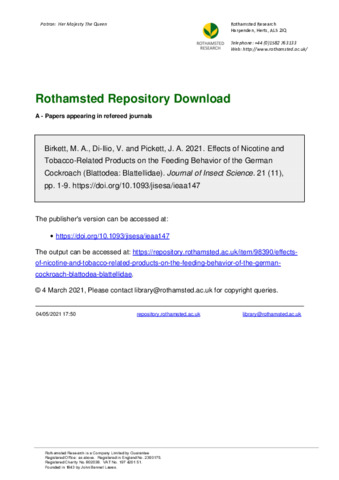 | Keywords | Blattella germanica, Nicotine, Tobacco smoke particulate, Feeding behavior, Behaviour |