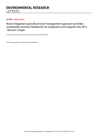 Novel integrated agricultural land management approach provides sustainable biomass feedstocks for bioplastics and supports the UK’s ‘net-zero’ target.