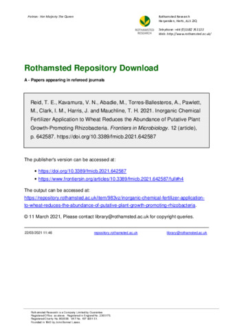 | Keywords | Rhizosphere, Rhizoplane, Fertilizer, Microbiome, Bacteria, Plant growth-promoting rhizobacteria, PGPR |