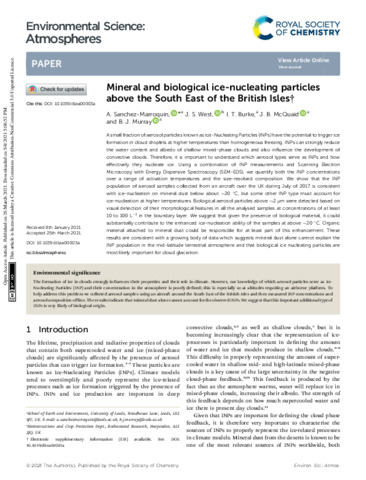 Mineral and biological ice-nucleating particles above the South East of the British Isles