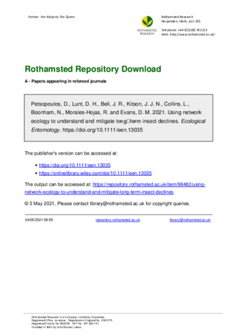 | Project | The Rothamsted Insect Survey - National Capability [2017-2023] |