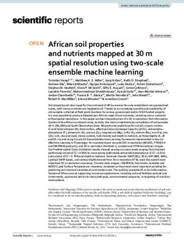 African soil properties and nutrients mapped at 30 m spatial resolution using two-scale ensemble machine learning