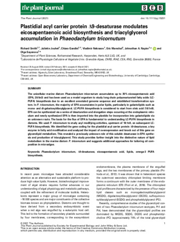 | Additional information | Plastidial acyl carrier protein Delta 9-desaturase modulates eicosapentaenoic acid biosynthesis and triacylglycerol accumulation in Phaeodactylum tricornutum |