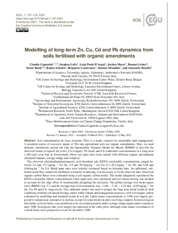 Modelling of long-term Zn, Cu, Cd and Pb dynamics from soils fertilised with organic amendments