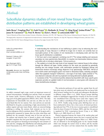 | Keywords | Aleurone, Iron, NanoSIMS, Nicotianamine, Pulse-chase, Trafficking, Wheat |