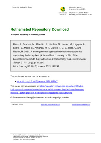 | Keywords | P450, Risk assessment, Pollinators, Detoxification, Synergism, Fungicides |