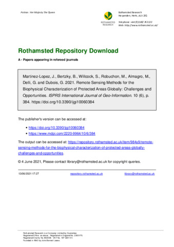 | Keywords | Protected areas, Remote senesing, Biophysical characterization |
