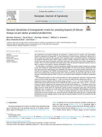| Keywords | Mountainous grasslands, Biomass yields, Process-based modelling, Growing season, Adaptive management |