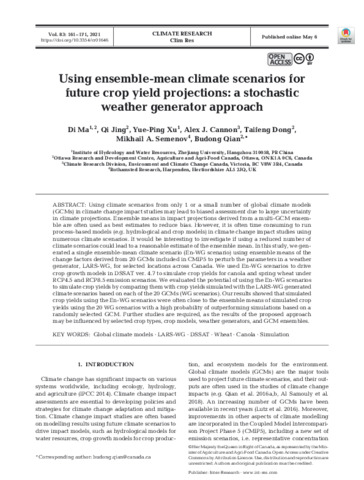 | Keywords | Global climate models, LARS-WG, DSSAT, Wheat, Canola, Simulation |