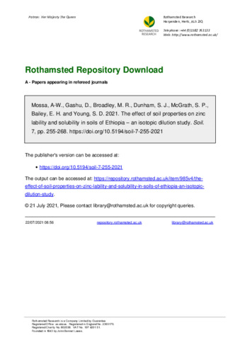 The effect of soil properties on zinc lability and solubility in soils of Ethiopia – an isotopic dilution study