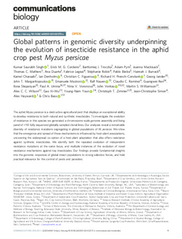 Global patterns in genomic diversity underpinning the evolution of insecticide resistance in the aphid crop pest, Myzus persicae