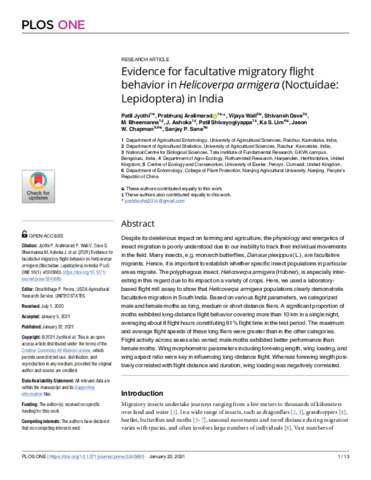 Evidence for facultative migratory flight behavior in Helicoverpa armigera (Noctuidae: Lepidoptera) in India