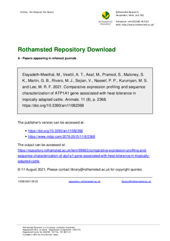 | Keywords | Climate resilience, Livestock, Expression profiling, Molecular clock, ATP1A1 gene, Body size, Heat tolerance, Marker assisted selection |