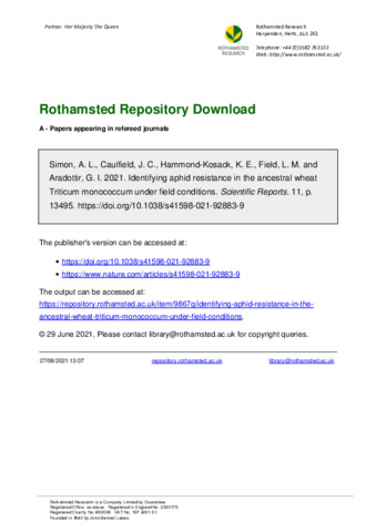 Identifying aphid resistance in the ancestral wheat Triticum monococcum under field conditions.