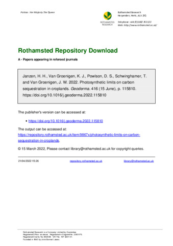 | Keywords | Carbon sequestration , Photosynthesis , Croplands , Decomposition |