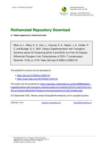 | Keywords | Omega-3, RNAseq, T lymphocyte, Transgenic plant , Fish oil , Eicosapentaenoic acid , Docosahexaenoic acid |