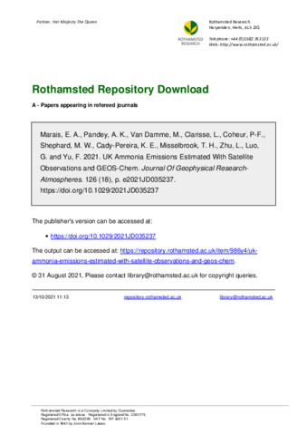 | Keywords | Ammonia, Emissions, Earth observations, GEOS-Chem, Agriculture, UK |