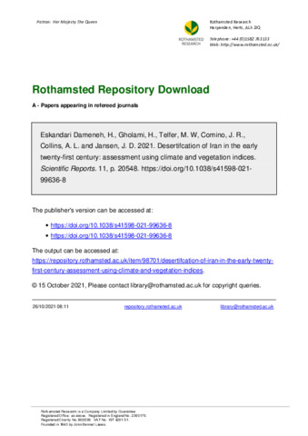 Desertifcation of Iran in the early twenty‑first century: assessment using climate and vegetation indices
