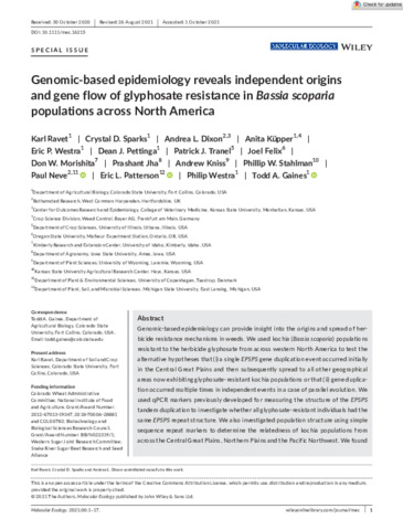Genomic-based epidemiology reveals independent origins and gene flow of glyphosate resistance in Bassia scoparia populations across North America