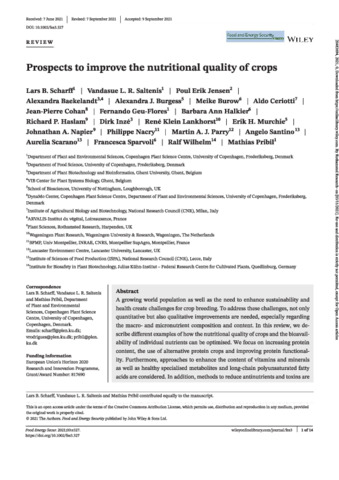Prospects to improve the nutritional quality of crops