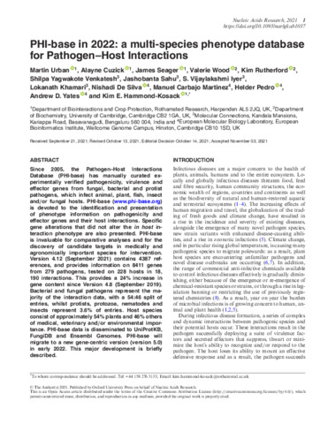 PHI-base in 2022 a multi-species phenotype database for Pathogen–Host Interactions