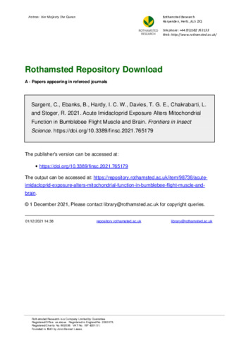 | Keywords | Bombus terrestris, Mitochondria, Imidacloprid, Oxidative phosphorylation, High-resolution respirometry |