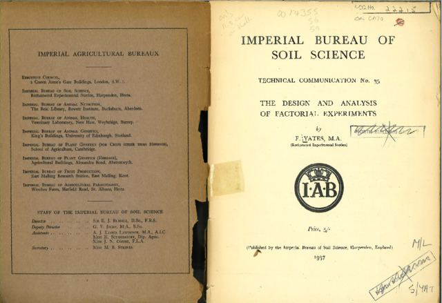 This Technical Communication has not been written with the object of convincing experimenters of the need for employing factorial designs, but rather for those who, while fully conscious of the advantages of such designs, find difficulty in laying them out and in analysing the results. It is,_ in fact, an attempt to give a comprehensive survey oi the simpler types of design at present available, and a description of the appropriate methods of analysis. The reader who has not done so is advised to first read Prof. R. A. Fisher's Design of Experiments, where he will find a full account of the logical basis of the whole technique of modern experimental design.