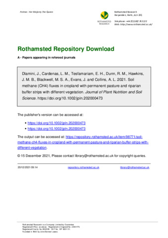 Aims To understand the dynamics of soil CH4 fluxes from a permanent upslope pasture and contiguous riparian buffer strips with different (grass, willow, and woodland) vegetation as well controls with no buffer vegetation, an experiment was carried out using the static chamber technique on a replicated plot-scale facility.