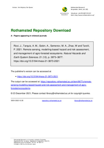 Remote sensing, modelling-based hazard and risk assessment, and management of agro-forested ecosystems