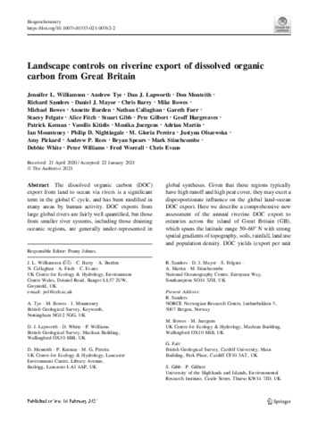 | Keywords | Dissolved organic carbon, Great Britain, Rivers, DOC export, DOC yield, Terrigenous DOC |