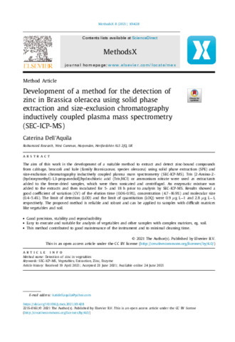 Development of a method for the detection of zinc in Brassica oleracea using solid phase extraction and size-exclusion chromatography inductively coupled plasma mass spectrometry (SEC-ICP-MS)