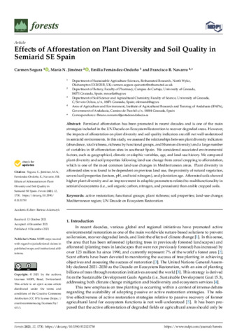 Effects of Afforestation on Plant Diversity and Soil Quality in Semiarid SE Spain