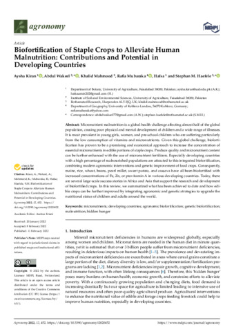 | Keywords | Micronutrients, Developing countries, Agronomic biofortification, Genetic biofortification, Malnutrition, Hidden hunger |