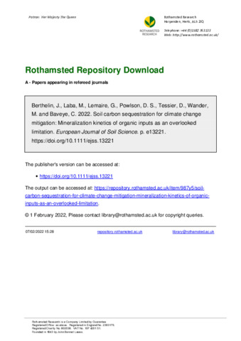 Soil carbon sequestration for climate change mitigation: Mineralization kinetics of organic inputs as an overlooked limitation