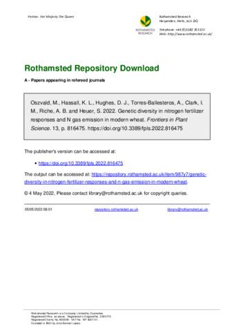 | Keywords | Triticum aestivum L., Nitrogen fertilizer, N 2 O greenhouse gas, Genetic diversity, Glutamine synthetase, Drought |