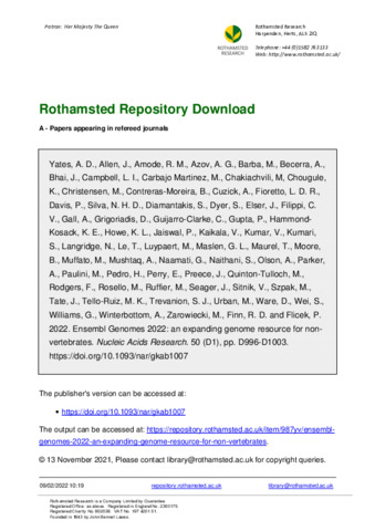 Ensembl Genomes 2022: an expanding genome resource for non-vertebrates