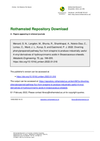 | Keywords | Metabolic engineering, Plant, Oilseed, 4-Vinyl phenol, 4-Vinyl guaiacol, 4-Vinylsyringol |