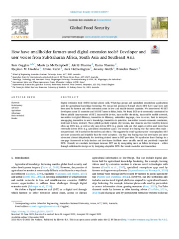 How have smallholder farmers used digital extension tools? Developer and user voices from Sub-Saharan Africa, South Asia and Southeast Asia