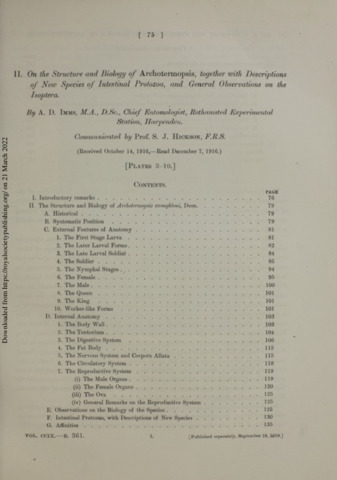II. On the structure and biology of archotermopsis, together with descriptions of new species of intestinal protozoa, and general observations on the isoptera